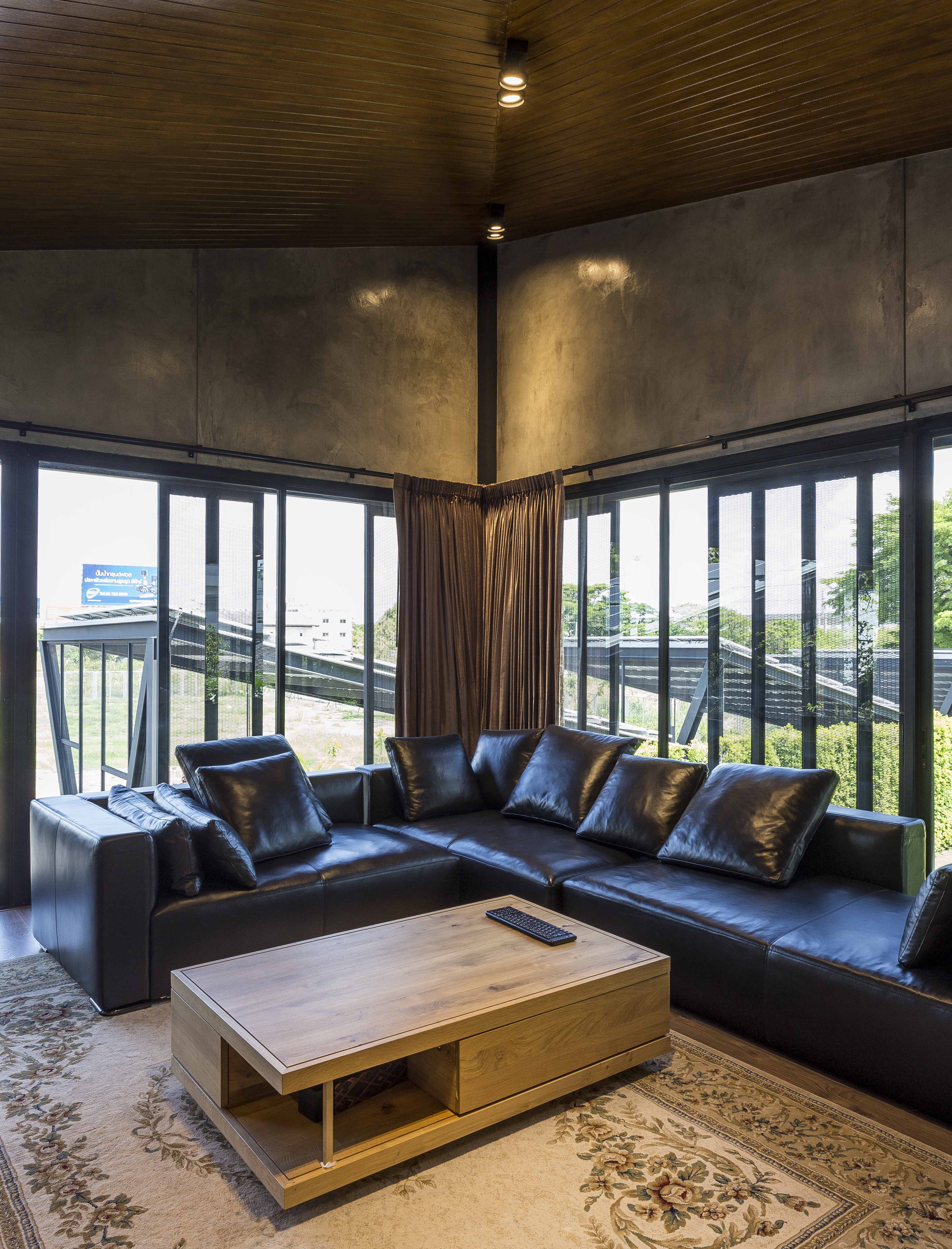 บ้านหลังนี้ก่อสร้างด้วยเหล็กรูปพรรณรีดร้อนทั้งหลัง ด้วยความที่เจ้าของบ้านชอบในวัสดุเหล็กอยู่แล้ว และเป็นวัสดุเดียวกันกับที่สถาปนิกคิดว่า น่าจะเหมาะสมกับรูปแบบ สไตล์ของบ้านหลังนี้มากที่สุด